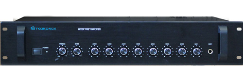 具有十一路输入(5路话筒输入、3路线路输入、2路紧急输入,一路网络信号输入)和两路输出。