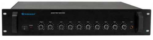 具有十一路输入(5路话筒输入、3路线路输入、2路紧急输入,一路网络信号输入)和两路输出。