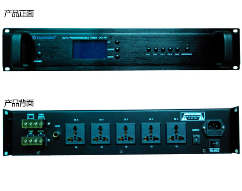 DCI-16T一款实现系统定时功能的主设备,可以定时接通和关闭后排的电源输出,方便系统设备进行定时开关机。它有6路定时输出通道(五路电源输出和一路短路输出),短路输出可用于激活电源时序器DCI-28S。