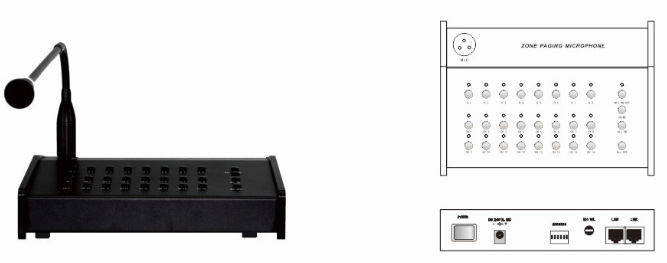 3、 可级联5个遥控分区/寻呼麦克风;