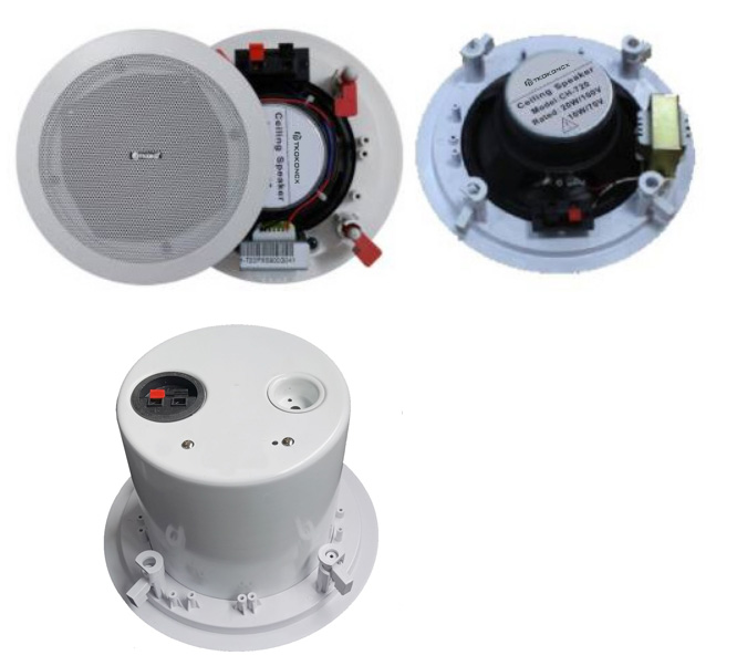 1、新款优质明装天花喇叭,全铁质金属外壳,高档室内天花喇叭,采用二分频设计,纤维防水盆,铝膜高音,高保真还原人声。
