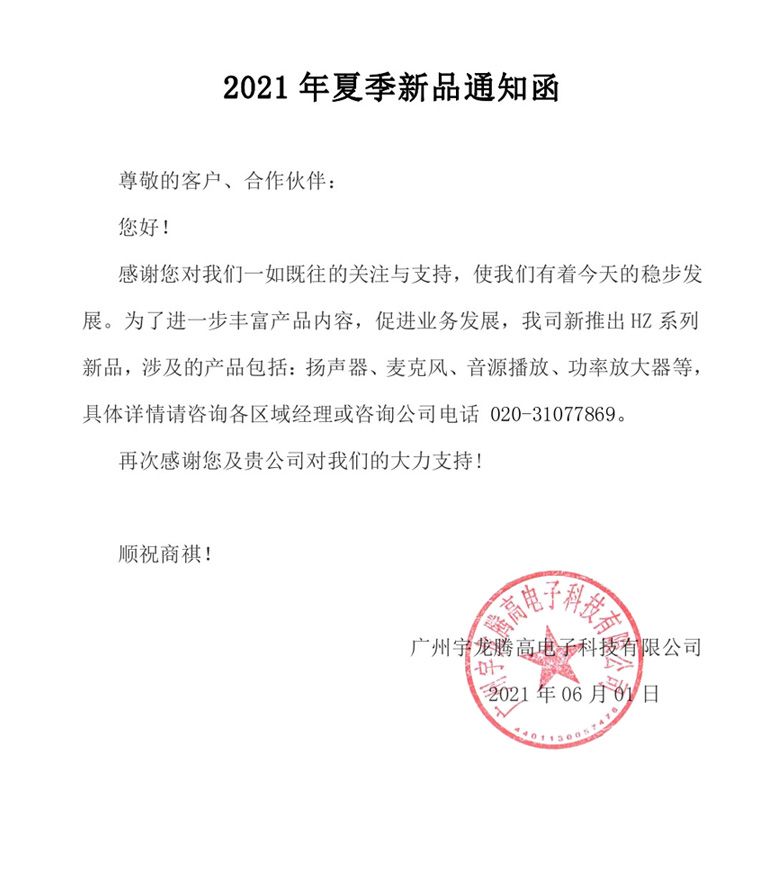 2021年夏季新品通知函